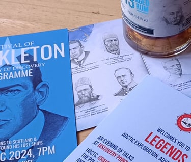 I have provided illustrations for a range of products and organisations, from a very special edition rum containing water collected as ice at the South Pole for the Explorer's Club, thank you cards for Shackleton adventure fixers in Oman, to posters for polar themed events for the Royal Scottish Geographical Society and Discovery Point in Dundee. I am currrently working with the Roald Amundsen's House Museum on a range of artworks to celebrate upcoming centenaries!